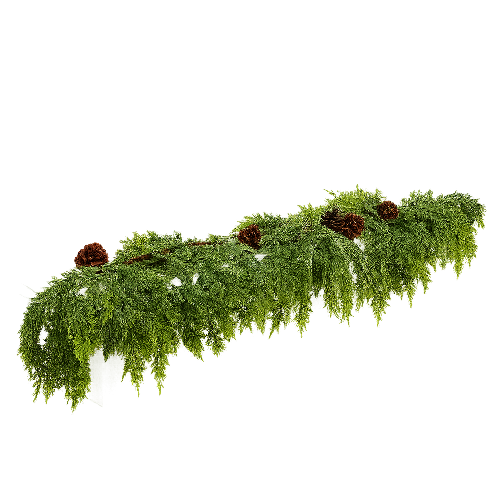 Developed with input from set decorators and retail visual merchandisers for realism and depth Multi-tone cedar mix and varied branch lengths mimic fresh greenery under warm and cool lighting Shape-Lock wire spine tested to hold styling on mantels, rails, and frames without sagging Low-sheen, photo-ready finish avoids the plastic shine common in budget garlands Produced in quality-controlled batches and checked for color consistency season to season
